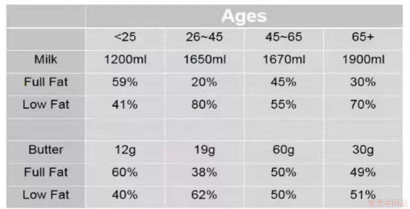 数据加工:找出某种规律作为内容的“底层思路”。本文的思路是:以对于全脂或低脂的偏好作为原则,不同的年龄段之间存在异同。