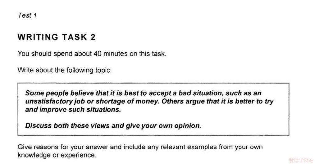Some people believe that it is best to accept a bad situation, such as an unsatisfactory job or shortage of money. Others argue that it is better to try and improve such situations.