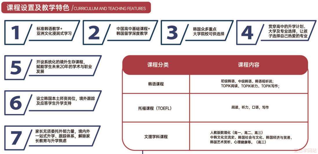 韩国留学班为学生提供韩国沉浸式学习环境,从TOPIK1到TOPIK6强化提升韩语能力,为校内考试和沟通打好韩语基础,此外还会帮助学生准备韩国学校申请,确保学生顺利入学。除韩国学习外,我们还开设理工科方向、文商科方向、艺术设计方向的特色课程,让学生衔接留韩的学习和生活。