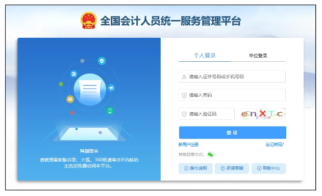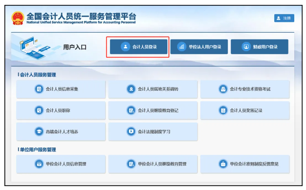 2.1登录“全国会计人员统一管理服务平台