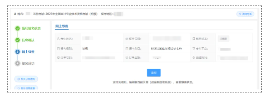 2.10 生成订单后,页面显示考生信息及订单金额,点击“支付”,进行缴费。