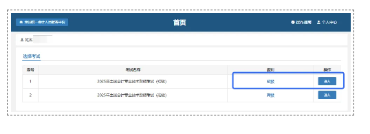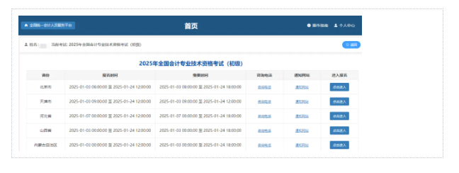 2.3 进入报名界面后,选择2026年全国会计专业技术资格考试(初级),点击“进入”按钮进行报名。