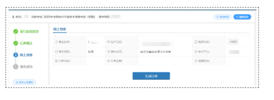 2.9 进入“网上缴费”页面,确认信息无误后,点击“生成订单”