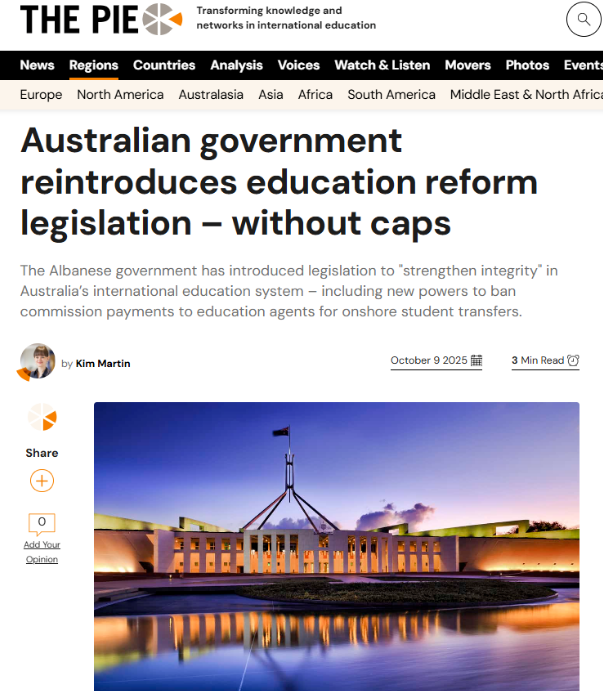 时至今年10月,澳大利亚政府重新提交《2025年教育立法修正案》,此番政策调整思路发生明显转变——不再通过人数限额进行管控,而是将工作重心转向提升国际教育的质量。