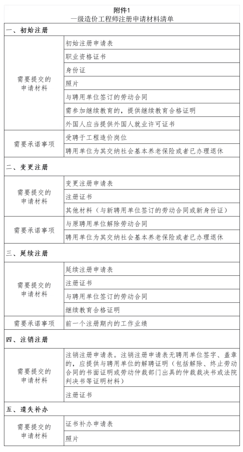1.一级造价工程师注册申请材料清单