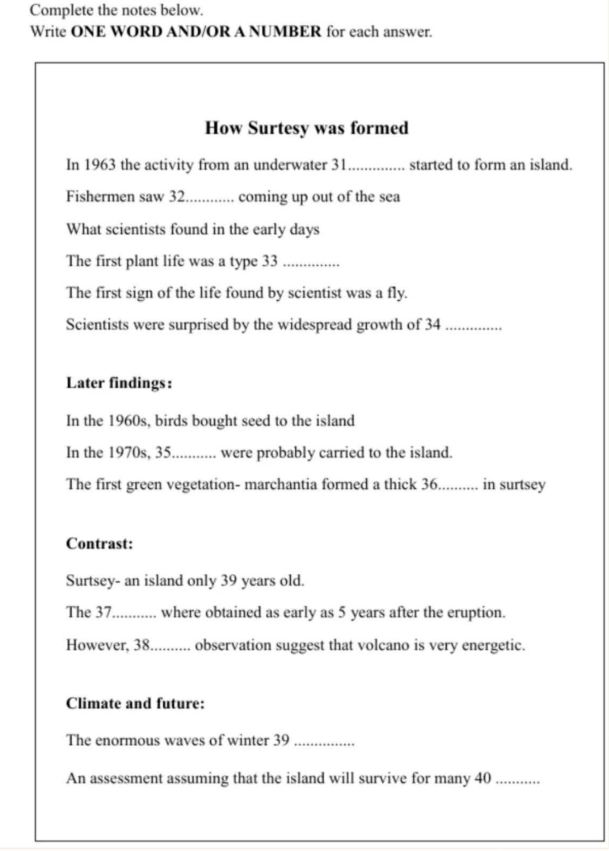 【Part 4:瑟特赛岛(Surtsey Island)——自然生态类(填空题)】