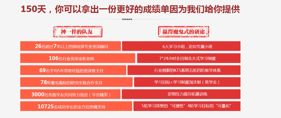 公共课集训面授课程+班主任考勤督学+定期专属测试+精细化答疑+考前全真模拟测试+名师点睛+KTS公共课精英大师课+专业课一对一+初试加强课时+复试指导视频+复试面授密训班+复试一对一(协议)