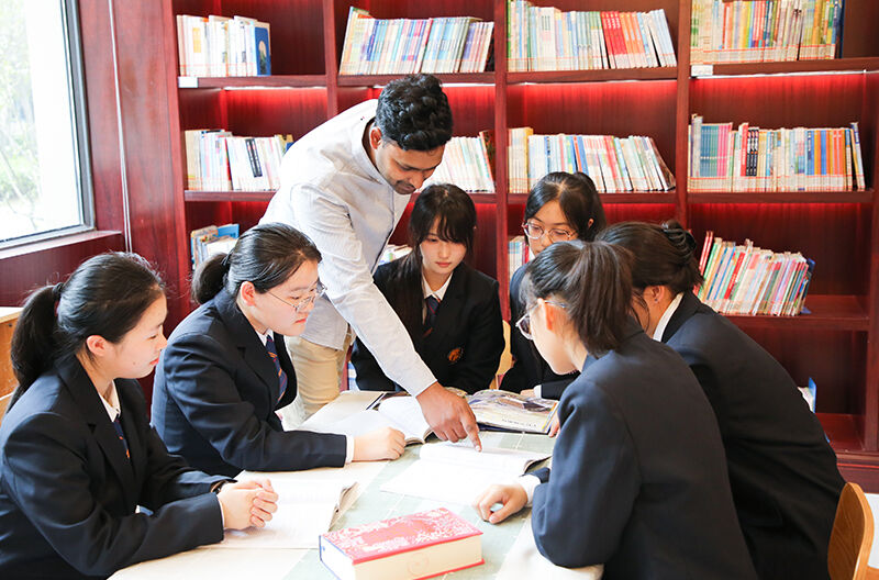 提供以义务教育为基础的中外融合课程,为学生构建扎实的学科体系。强化英语环境,提供学习方式的引导,为顺利进入国际高中学习做准备。 英语教学占所有课程30% 其中一半为外教授课。