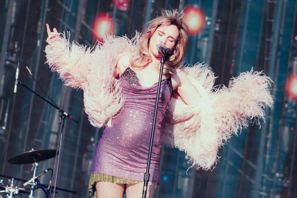 Waterhouse made the fun announcement during a performance at the Corona Capital Festival in Mexico.During her set, the actress took a pause to address the audience and show off her outfit. 沃特豪斯是在墨西哥的科罗娜首都音乐节的演出中宣布这一喜讯的。在演出过程中,这位女演员停顿了一下,向观众致意,并展示了她的服装。