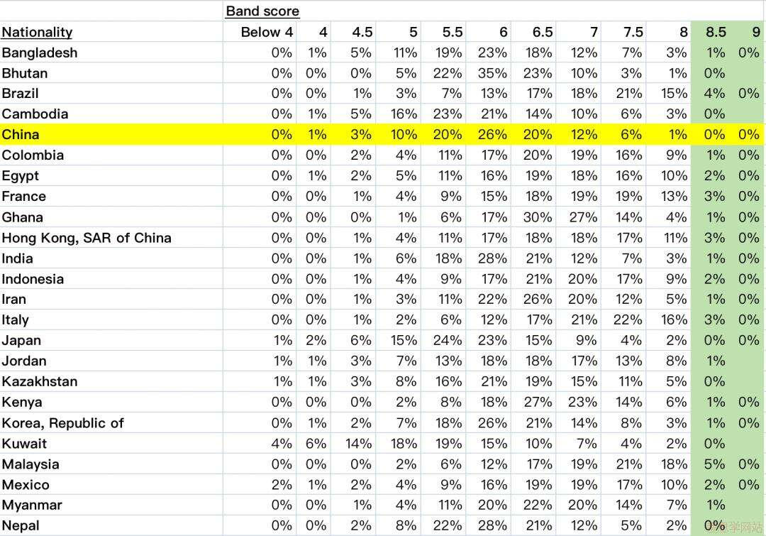 说了半天,到底全中国有多少人能拿到8.5-9分呢?我们不妨看看雅思官方统计的数据: