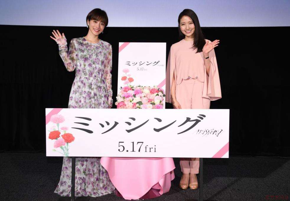 演员石原里美(37岁)和自由主播三田友梨佳(36岁)9日出席了东京都内举办的电影《失踪》(5月17日全国上映)的上映前“母亲节”特别试映会。
