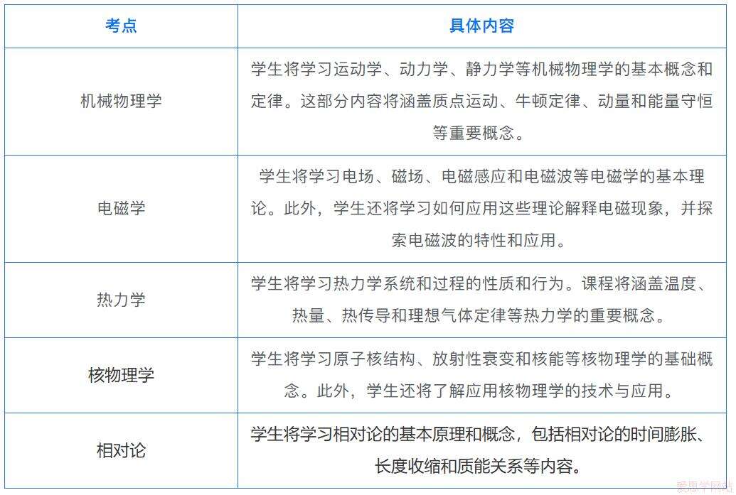 A-Level物理学习分为AS和A2两个部分,涉及到的知识点与国内高中物理学习相比范围也更广,包括了力学、材料学、波、电学、光学、电磁场、粒子物理、核物理、天体物理等众多领域内容。