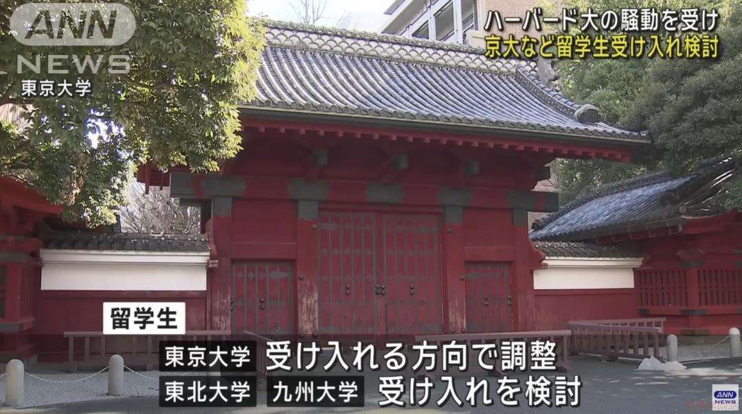 日本已有7所国立大学正研究接收在美求学的留学生。大阪大学宣布将在医学系研究院接收最多100名学生。广岛大学拨款约7亿日元,用于为留学生和青年研究人员提供宿舍等支援方案,东京大学则计划为受影响学生提供最长1年的课程计划。