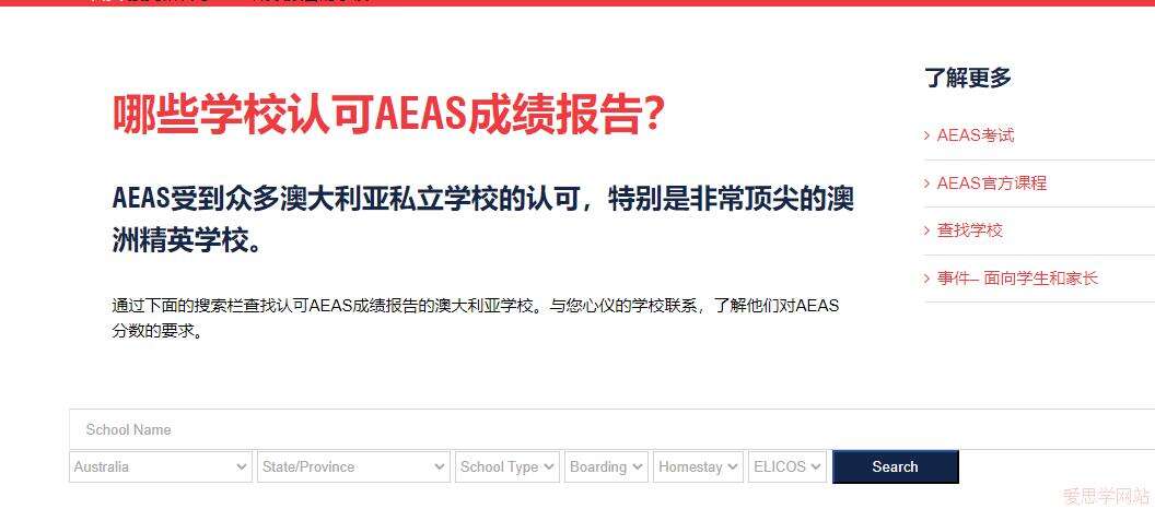 通过网址查询接受和认可AEAS成绩报告的学校: