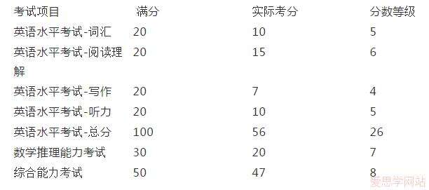 1. 英语水平考试(English Language Proficiency)2. 数学推理能力考试(Mathematical Reasoning Ability)3. 非语言试题的综合能力考试(Non-Verbal General Ability)
