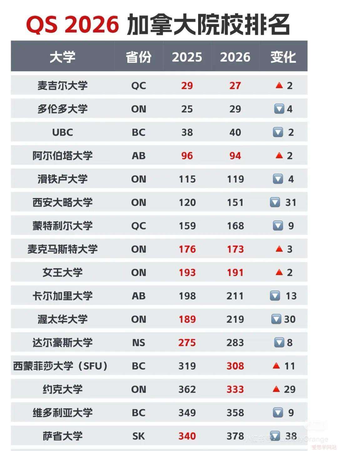 在2026年QS世界排名里面,加拿大有三所冲进了前50的学校,多伦多大学,麦吉尔大学不列颠,哥伦比亚大学ubc,但其他大学都没有冲进前100,想要了解加拿大哪些大学更好,可以参考加拿大本地的,麦考林杂志大学排行榜,加拿大的大学分为医博类,综合类和基础类三种,麦考林排行榜会根据这三种分别排行