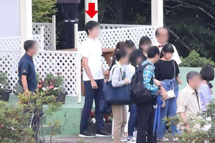 “虽然当时现场有动物王国的员工、宫内厅职员和警卫人员,但在几位与爱子公主同龄的女性中,出现了一位身高约185公分的青年,与天皇一家同席而坐。”