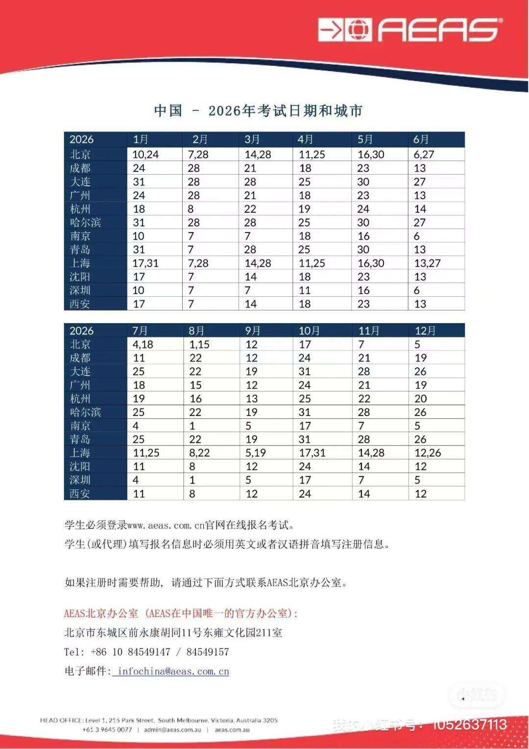 (1)AEAS公布的2026年AEAS考试的地点为:北京、大连、哈尔滨、沈阳、西安、青岛、成都、杭州、南京、上海、广州、深圳一共12个考点,预计2026年新增设武汉考点。则共有13个考点。