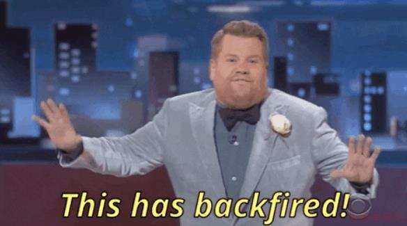 例句:His attempt to cover up the mistake backfired and made the situation worse. (他试图掩盖错误的做法翻车了,让情况变得更糟。)