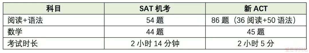 它们需要差不多一样的时间来完成(ACT改革后,必考项目三科125分钟,SAT是134分钟),并且通常涵盖相同的核心主题领域。
