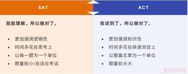 这里有一份SAT和ACT的对比侧重点: