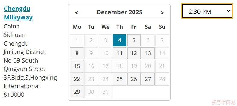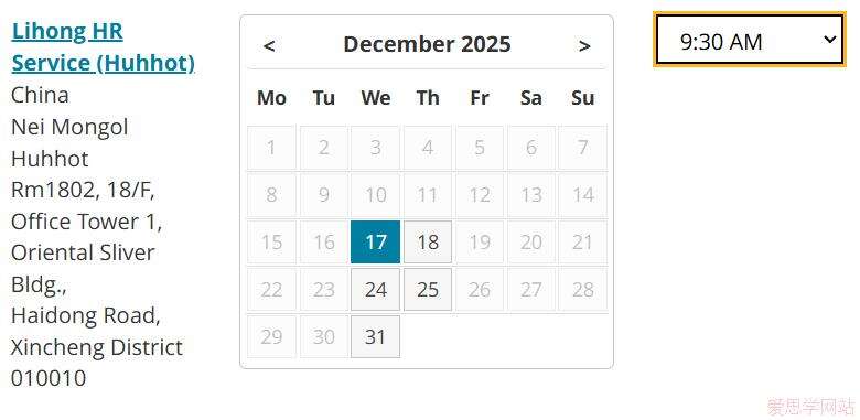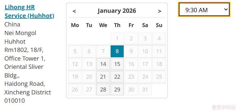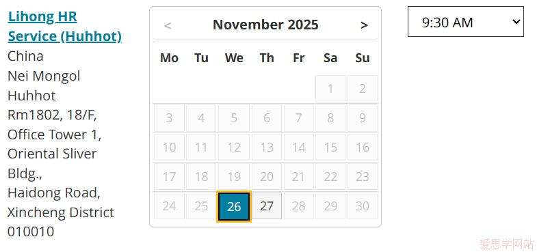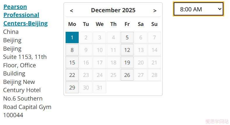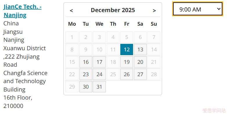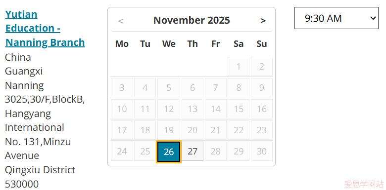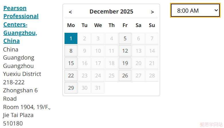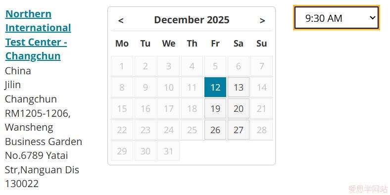 目前,该考场 11,12,1 月有考位,最近的考位可预约 11 月 27 日。