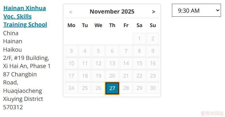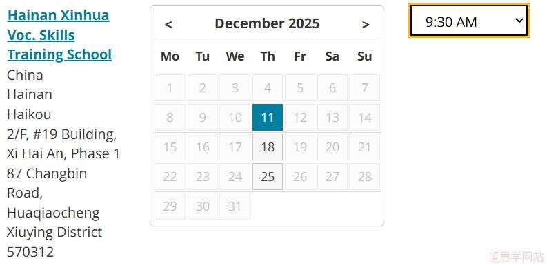 海南省海口市秀英区长滨路 87 号华侨城曦海岸一期 19 栋 2 层 206(海南新华职业技能培训学校考点)