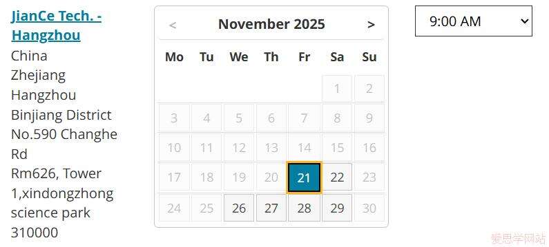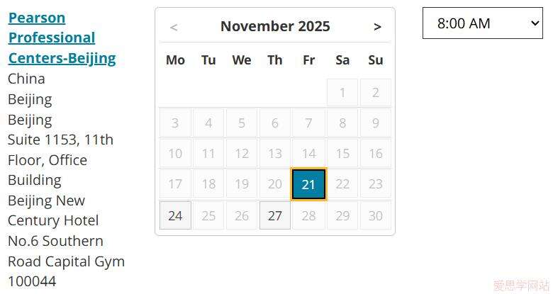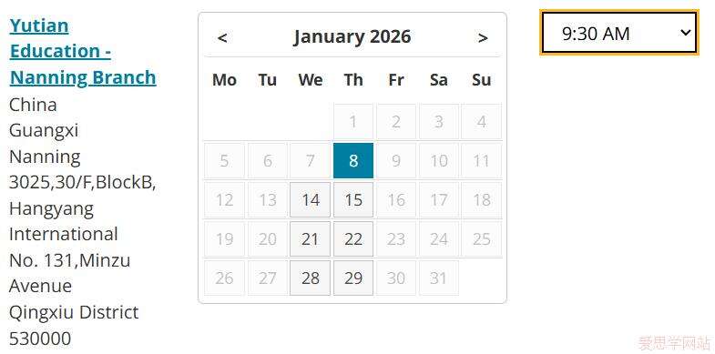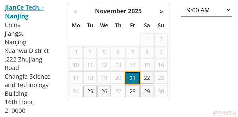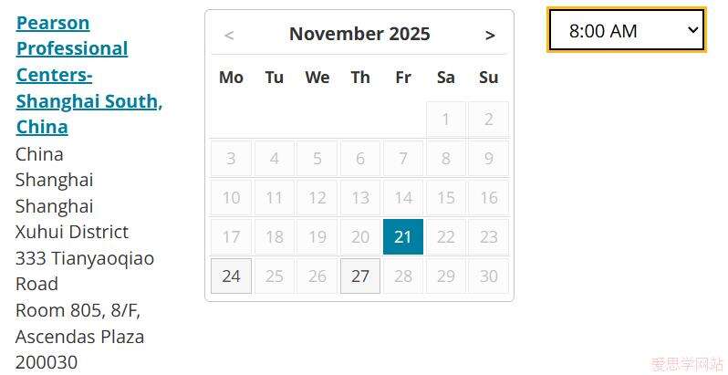 目前,该考场 11,12,1 月有考位,最近的考位可预约 11 月 21 日。