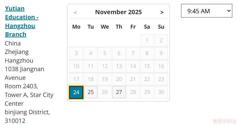 目前,该考场 11,12,1 月有考位,最近的考位可预约 11 月 24 日。