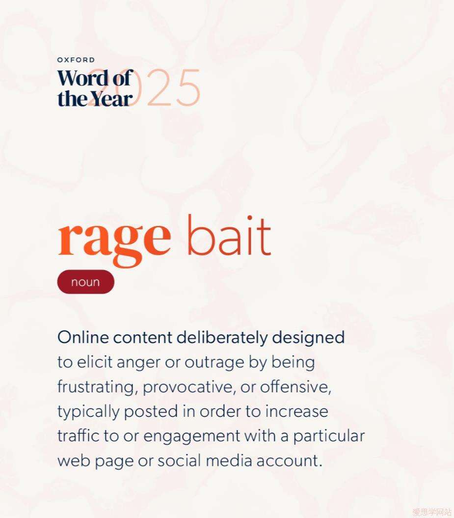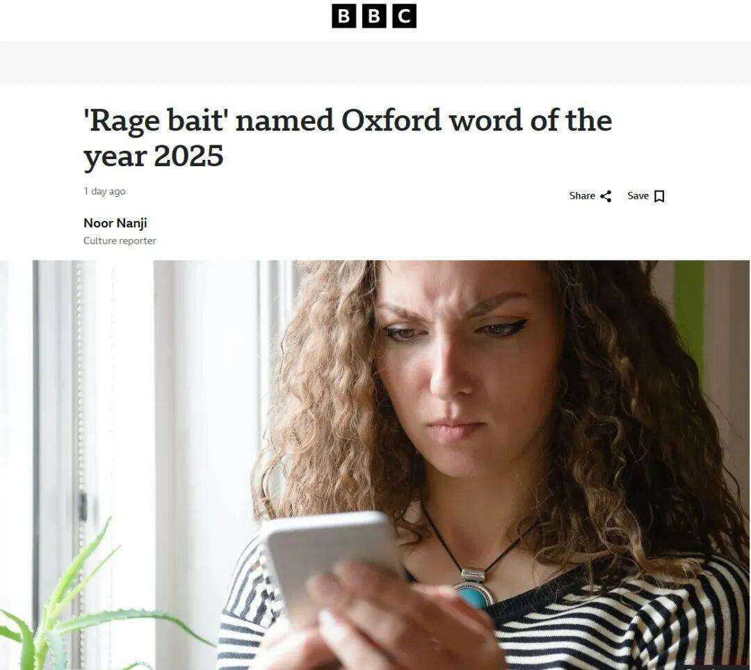 牛津大学出版社将“rage bait(情绪煽动 / 愤怒营销)”选为2025年度词汇,以此揭示互联网文化中更加“有毒”的一面。