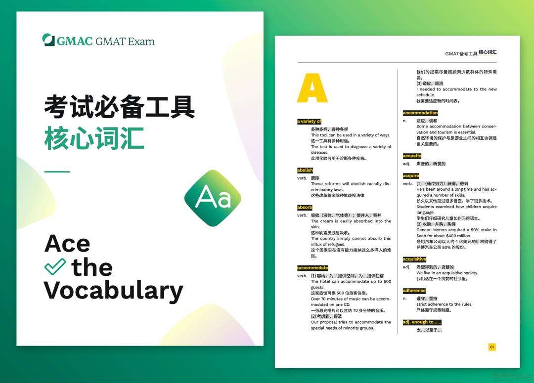 为了帮助大家更好地掌握GMAT考试中频繁出现的单词,官方为大家带来《GMAT核心词汇》。