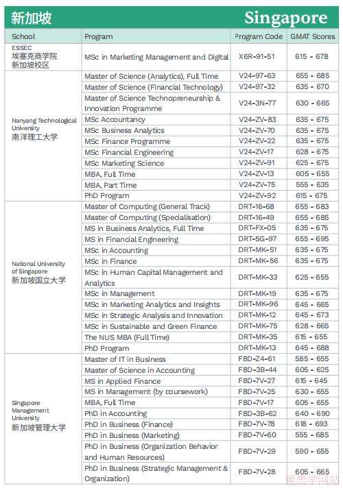 ➤新加坡院校的送分成绩范围一般则为GMAT585-695;