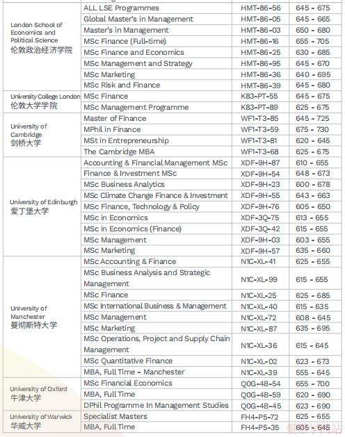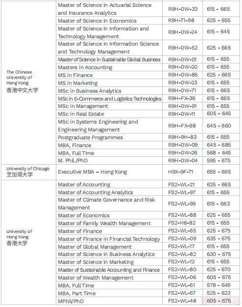 ➤港校提交的送分成绩范围大致是在GMAT575-675;
