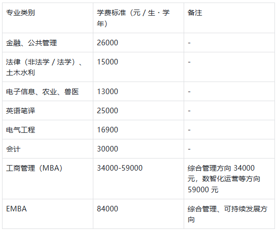 学费标准(按年缴纳,最终以物价部门备案为准):