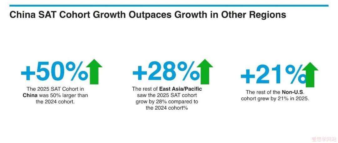 回顾过去一年,根据CB官方的数据显示:中国2025届高中毕业生参加过SAT考试的学生人数同比增长了50%,这也说明中国家长在美本申请中对于SAT备考的重视。