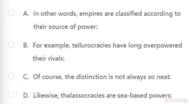 需要注意的是,这道题并非常规的“填入一个逻辑连接词”类型,而是要求考生根据上下文语境判断哪个短语最符合逻辑关系。该题的正确答案为C,不确定各位考生当时是否选对。