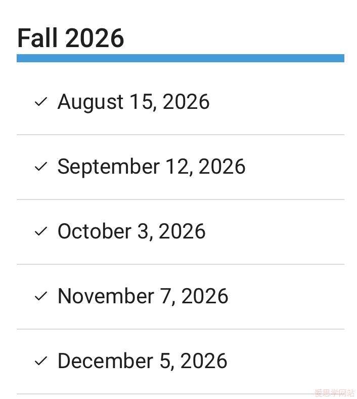 👆上图为 26 年下半年预期的考试时间,能看到下半年的考试次数除了 7 月以外每月都有考试,其中 8 月是考生人数预计最多, 因为通常经过一个暑假的备考,8 月是一次重要的出分机会, 9 月 10 月对于申请季赶 ED 的同学也是最后的冲刺。
