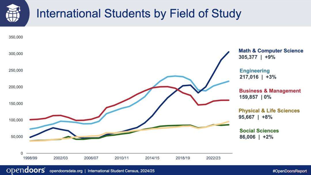根据《2025年美国门户开放报告》统计,在24-25年度共有117万+的国际学生就读于美国的大学(3000家北美大学机构),这一数字同比去年(112万+)是有所上升的。由于美国最丰富的教育资源、经济与科技领域的超然地位,选择美国的教育及今后就业还是目前最佳的留学选择。
