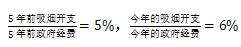 5年前的吸烟开支≤今年的吸烟开支,即该项花费金额的数量也增加了。