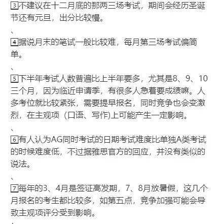 那么一年之中,什么时候考雅思会简单呢?有说月末、下半年比较难的: