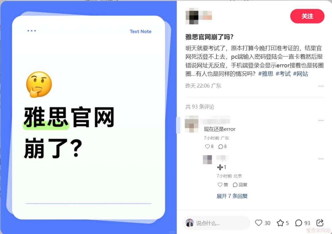 昨晚到今晨,小红书、微博的雅思话题区彻底炸了锅。继放考位、查分高峰后,雅思官网又一次在考生最关键的“生死时刻”掉了链子,无数备考生在崩溃、焦虑、无助中熬过了一夜。这场突如其来的系统崩溃,不是一次简单的“网络波动”,而是实实在在地碾压着一群人的努力和期待。