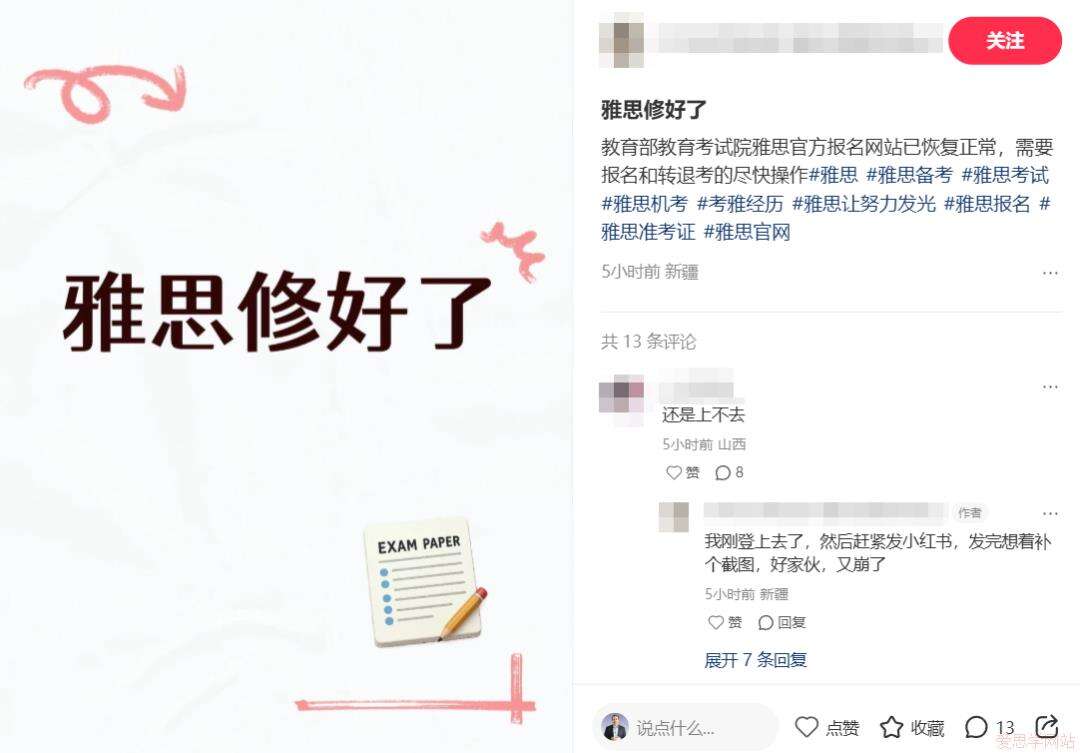 我们理解,高峰时段的系统压力确实很大,但作为一个全球认可的语言考试,雅思官方理应具备应对这种压力的能力。考生们需要的不是“反复修复”的系统,而是“始终稳定”的保障;不是“沉默应对”的态度,而是“主动负责”的担当。