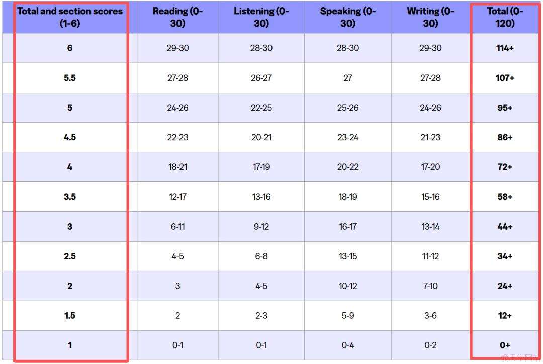 2026年1月后考试:新托福最低5.0分(会审核各科目分项分数的协调性)。