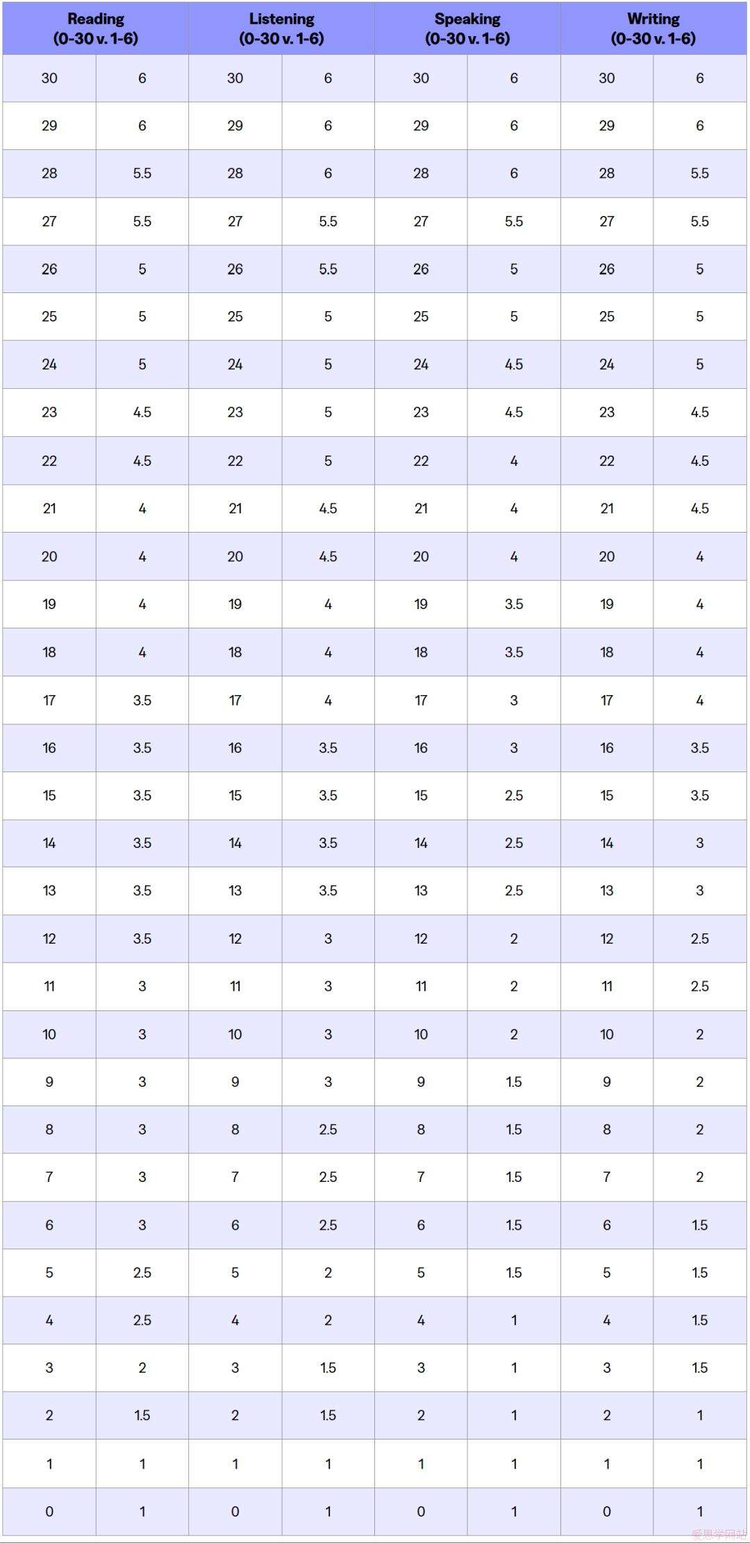 新旧托福总分对照表