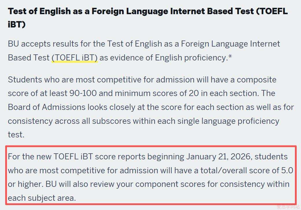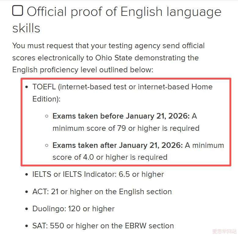 2026年1月后考试:新托福最低4.0分。