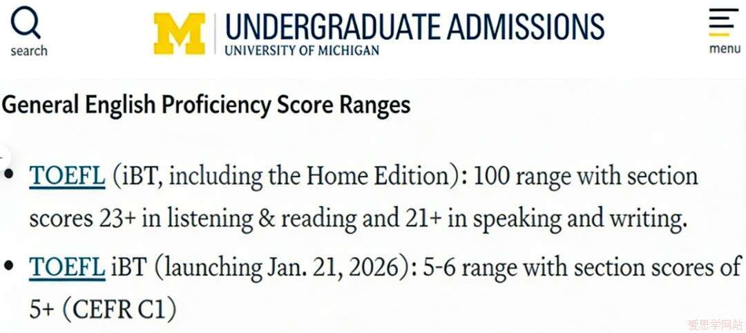 密歇根大学安娜堡对语言能力的要求向来高且细,尤其看重托福单项分数的均衡性,无论是旧托福还是新托福,都明确了各单项的最低标准。