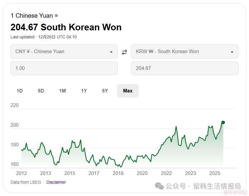 近日,韩元兑人民币汇率持续走低(目前为1:205),一度跌破关键心理关口1:200,创下多年甚至历史新低。外汇市场上,1人民币兑韩元汇率持续走高,意味着同等数量的人民币可以兑换更多韩元。这一汇率变动如同一石激起千层浪,在留学领域引发广泛关注——赴韩留学成本大幅降低,性价比显著提升。