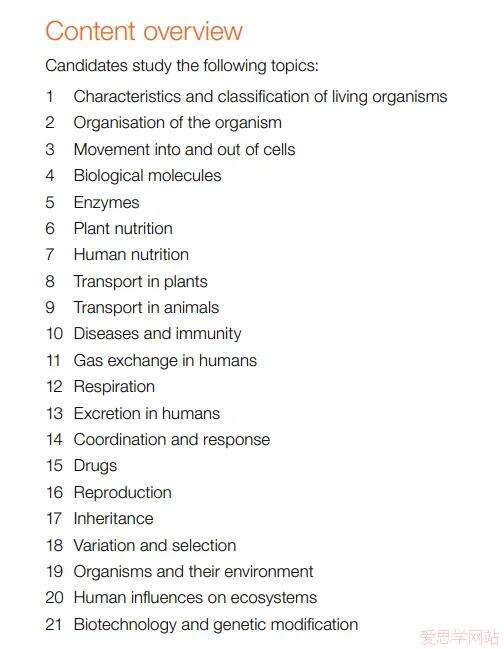 新版考纲依然涵盖原有的21个主题,内容包括生物分子、酶的作用、植物营养以及遗传学等核心知识点,整体结构保持不变,未做增减。