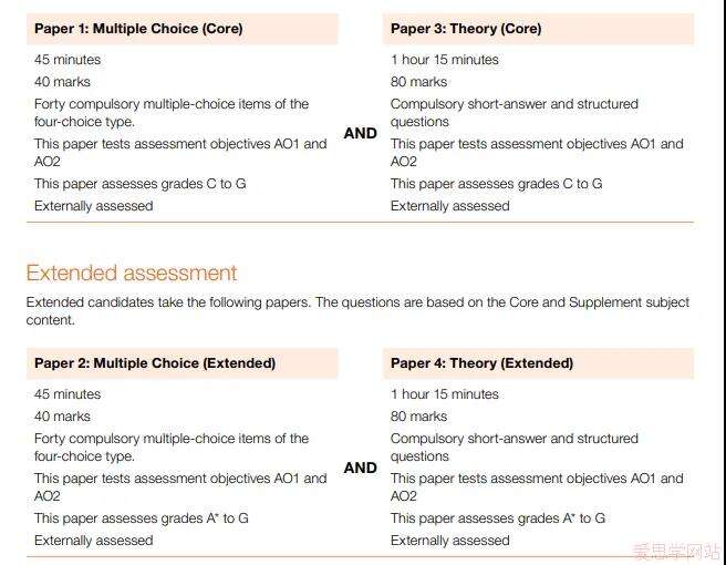 核心考生需参加 Paper 1 和 Paper 3,扩展考生需参加 Paper 2 和 Paper 4。