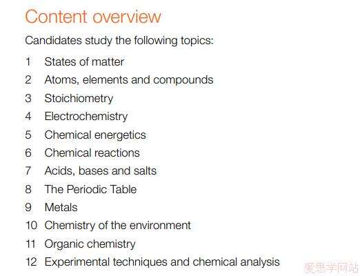 新版考纲中的主题数量维持不变,仍包括12个核心板块,涵盖物质状态、原子结构、化学计量、电化学等关键内容,未新增或删减任何主题。